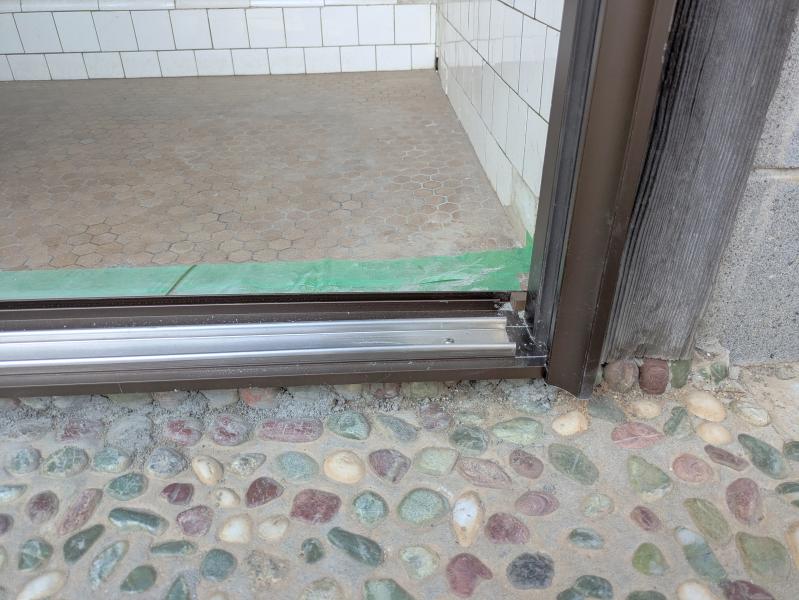 現地調査では段差の高さを正確に測定し、「段差解消工事+玄関引き戸の交換」をご提案。