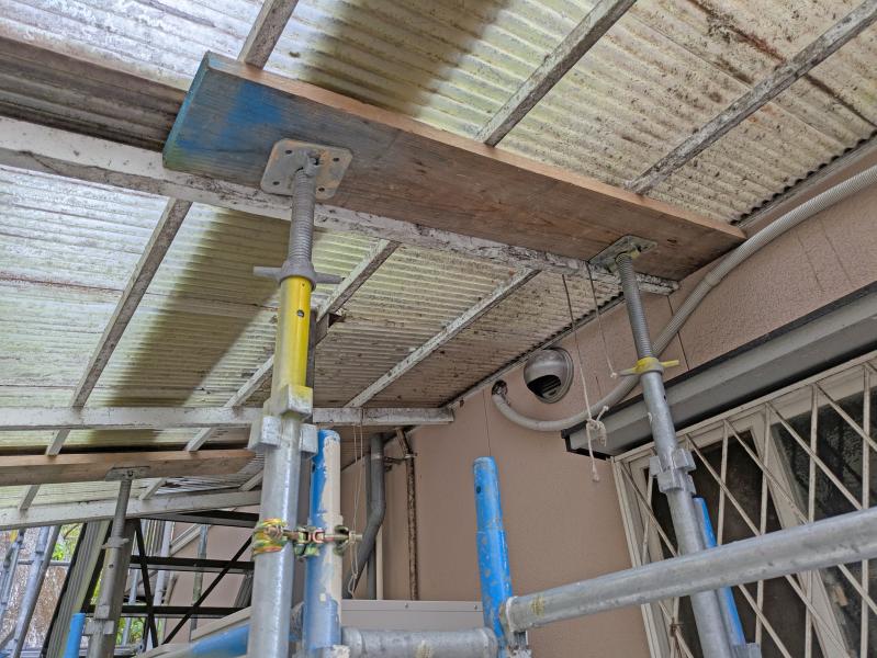 今回の現場は波板屋根があるお宅だったので、崩れないように土台をしっかりと設置!