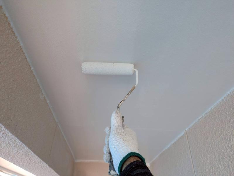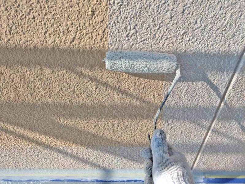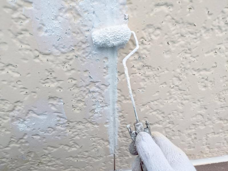 細かい部分は小さなローラーを使用し、ムラのないよう丁寧に下塗りをしていきます。