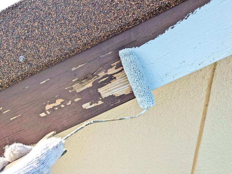 破風は塗膜は剥がれている状態でした。