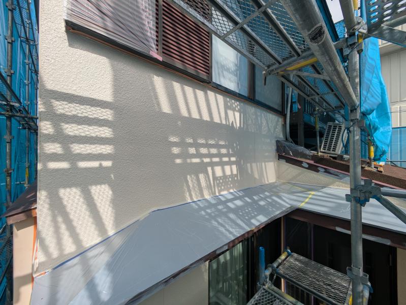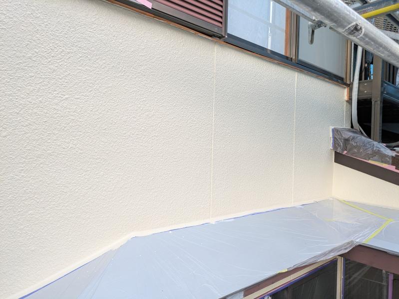 ベランダ部分を先行して中塗り〜上塗りまで仕上げる工程を組ませていただきました!