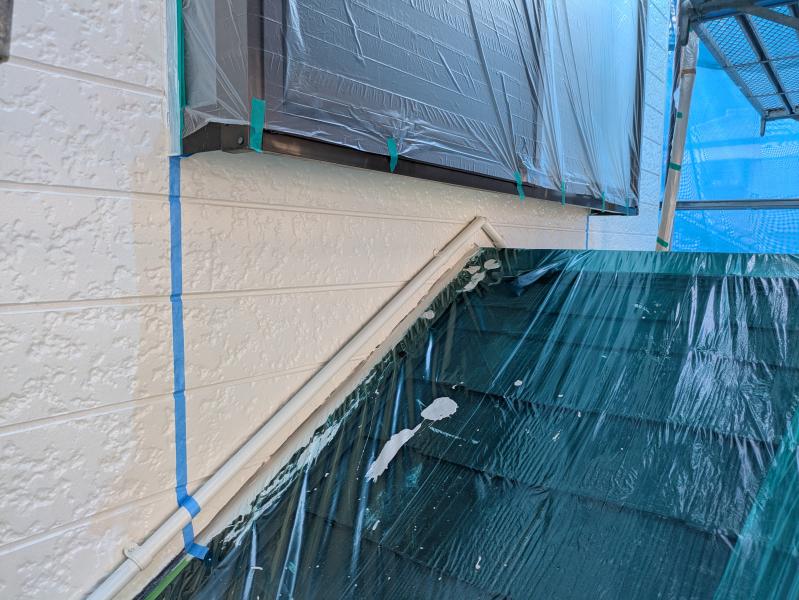 雨樋は今回お家のアクセントカラーに合わせて白で塗装。