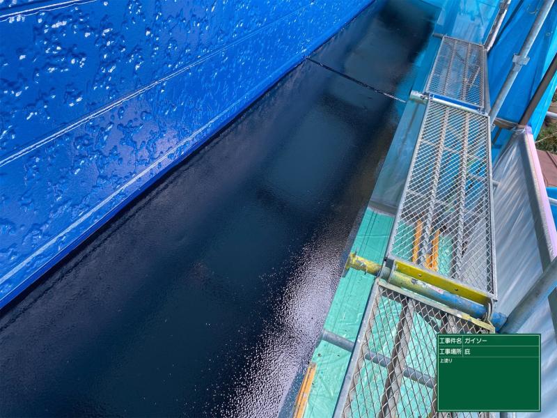 破風上塗りの様子